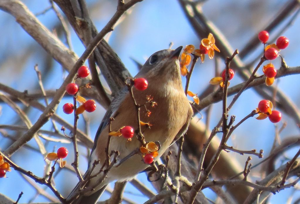 Adult bluebird in his natural habitat. Rusty/brown chest.